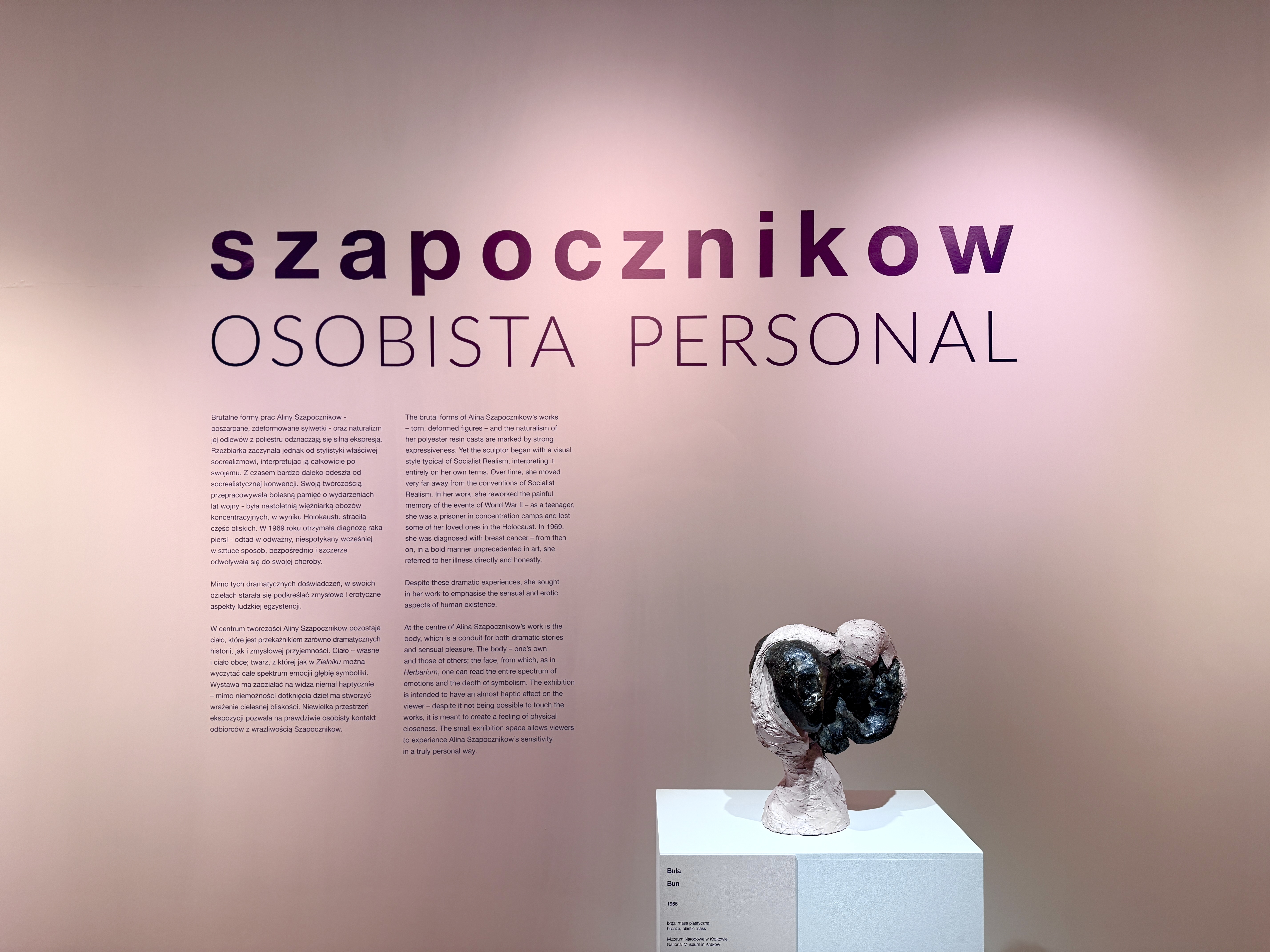 W Galerii Sztuki Polskiej XX+XXI prezentujemy twórczość jednej z najważniejszych polskich rzeźbiarek okresu powojennego. Pionierską - zarówno w kontekście eksperymentów z materią rzeźbiarską, jak i sztuki kobiecej. Wystawa Szapocznikow. Osobista po raz pierwszy gromadzi w jednym miejscu wszystkie prace Aliny Szapocznikow znajdujące się w zbiorach Muzeum Narodowego w Krakowie. Skupioną na emocjach narrację dopełnia kilka dzieł z kolekcji m.in. Muzeum Narodowego we Wrocławiu czy Muzeum Sztuki Nowoczesnej w Warszawie.