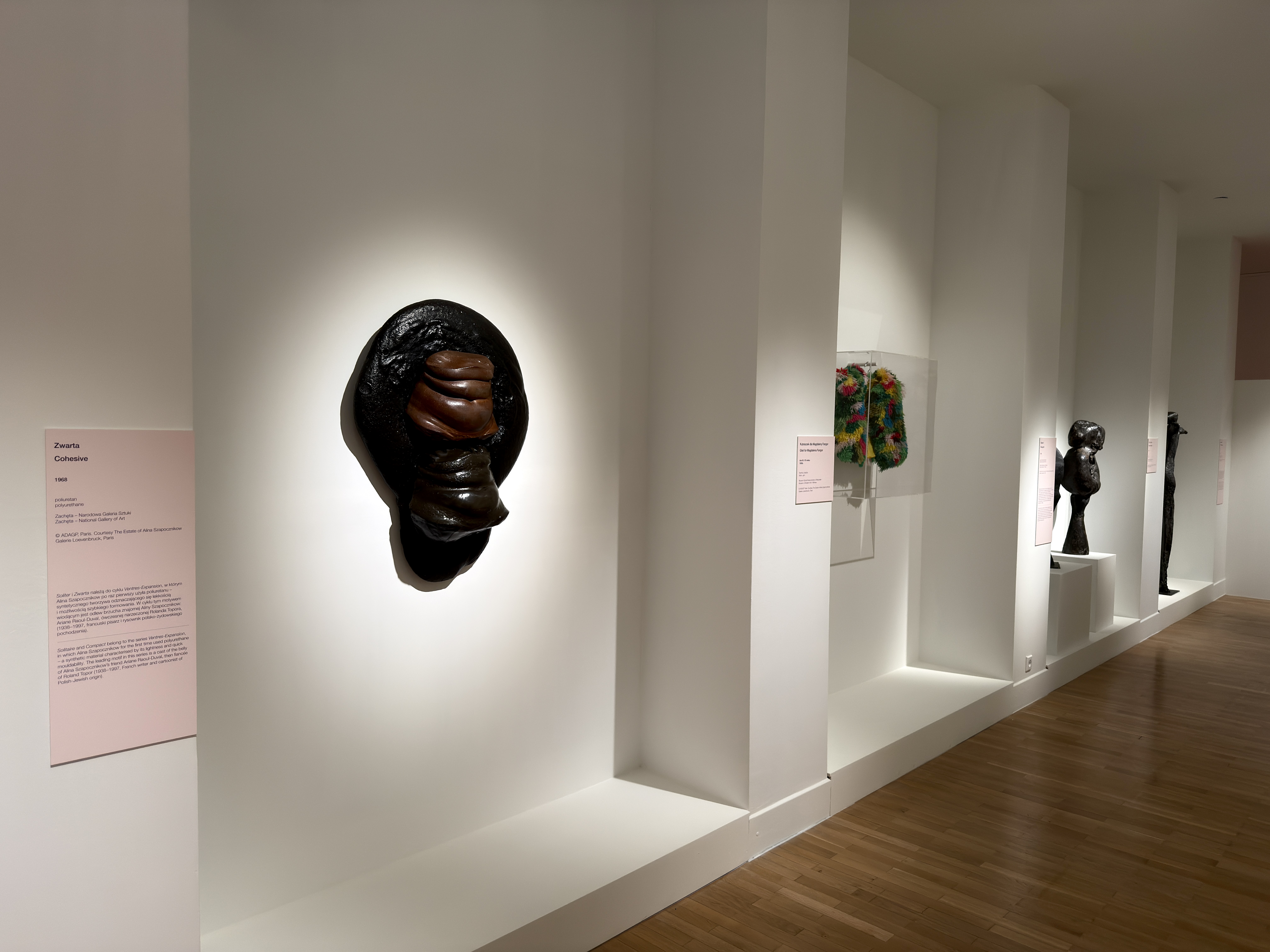 Ekspozycja w Gmachu Głównym MNK ma zadziałać na widza niemal haptycznie - mimo niemożności dotknięcia dzieł ma stworzyć wrażenie cielesnej bliskości. Niewielka, nastrojowo oświetlona przestrzeń prezentacji rzeźb pozwala na prawdziwie osobisty kontakt odbiorców z wrażliwością Aliny Szapocznikow.